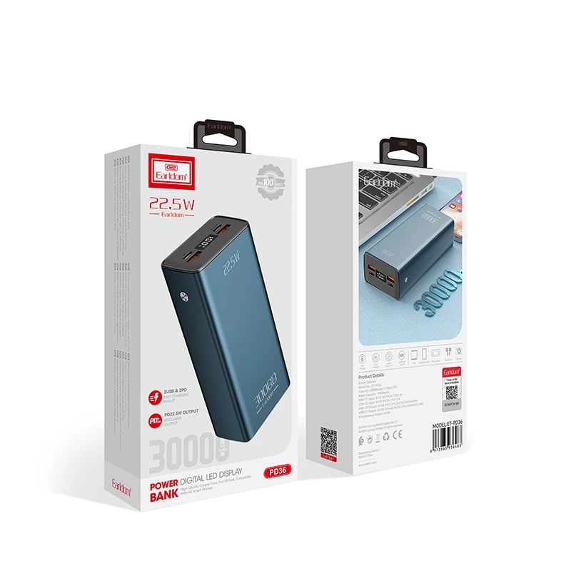 پاوربانک ارلدام مدل ET-PD36 ظرفیت 30000 میلی آمپر ساعت